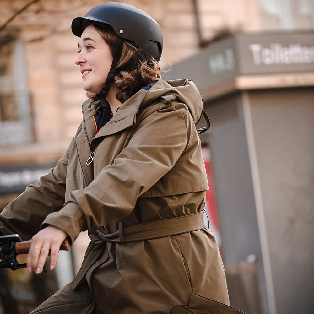 Du textile utile que l’on garde au fil des saisons, c'est notre leitmotiv ! Nos produits d'extérieurs sont coupe-vent et s’adaptent au gré de vos déplacements. Imperméables pour la plupart, ils se transforment soit en sac en un instant grâce à leur pochette intégrée, soit en vêtement de ville après une utilisation dédiée à votre mobilité. Une adaptation inédite pour permettre aux femmes mobiles de ne plus faire de concessions concernant leur tenue.