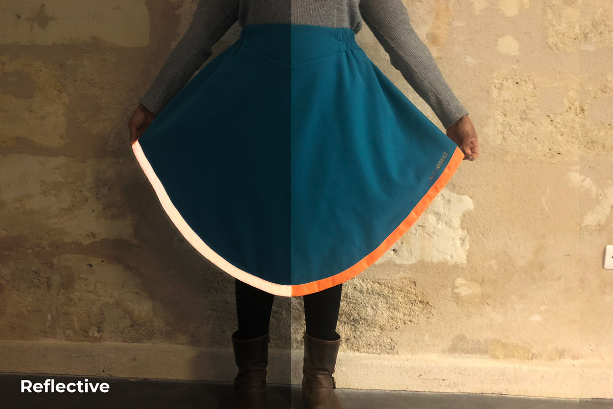 - Bande réfléchissante sur le bas de la sur-jupe : visibilité 360°
